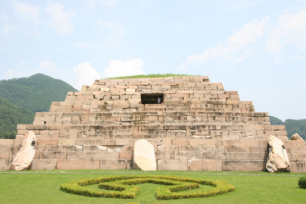 它坐落在一处缓坡的小山上,建于公元5世纪初,是高句丽第二十代王长寿王的陵墓。那为什么称其为将军坟呢?一位老人告诉记者,相传该遗址还不为外人所知的时候,有的百姓上山采人参时,无意中发现了这座高高的墓葬。当时人们以为里面一定住着一位战绩赫赫的大将军,“将军坟”就这样叫开了。