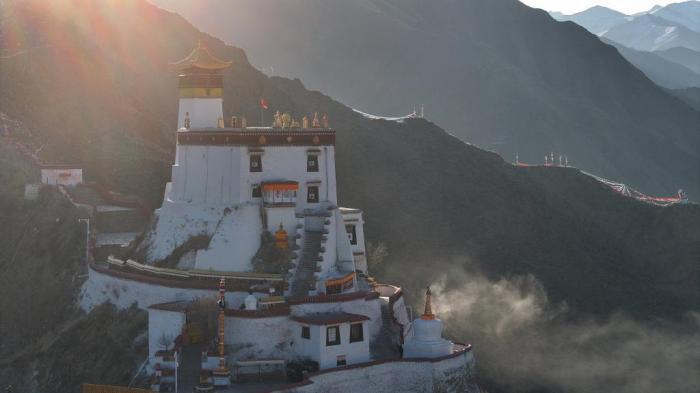 西藏山南雍布拉康日出如画
