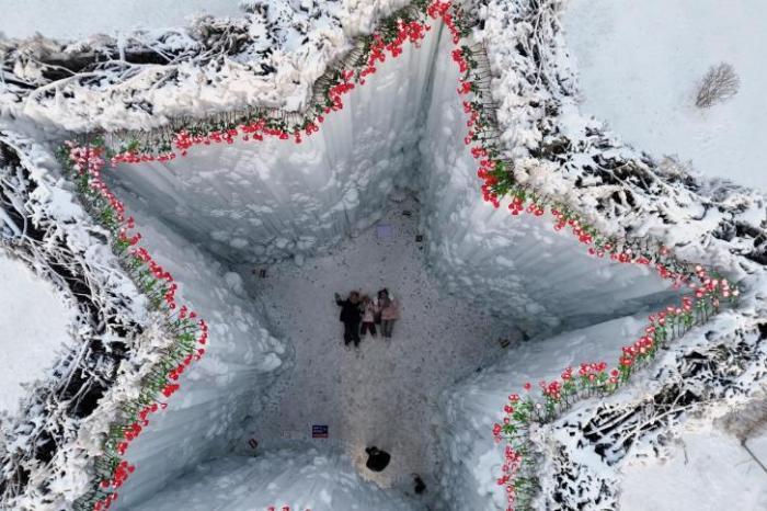 吉林长春:冰雪玫瑰相映成画引游客参观