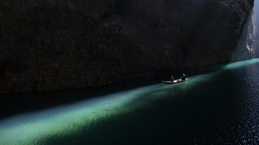 湖北鹤峰:一线天光舟悬空 绿水青山客自来