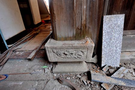 在一家收藏店内,记者看到不少雕工精美的木雕构件,其中大都是描金浮雕。一个红漆喜鹊登梅的描金筷筒,售价600元,而一对原来放在古厝大厅梁柱上的描金雕刻“寿”字,标价2000元。