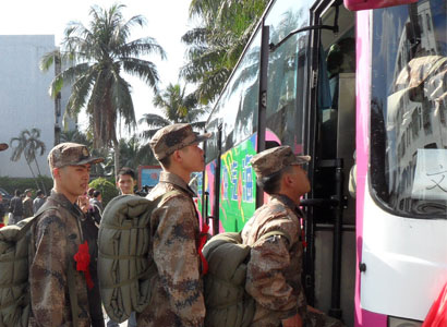 中新网12月15日电 据文昌市政府网站消息,12月11日下午,海南省文昌市欢送应征青年光荣入伍大会在市武装部隆重举行,肩负着神圣的使命,带着全市人民的重托,文昌市入伍新兵踏上了光荣的征程。
