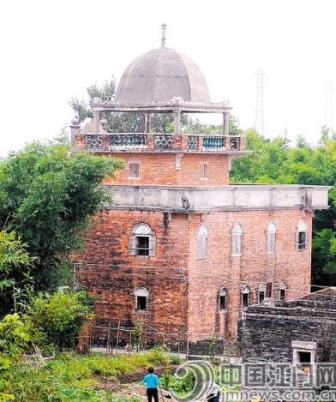记者看到,在浮月村口,富丽堂皇的门楼和凉亭特别耀眼。施工队在整理通往各洋楼的小道路基,铲车运载石粉铺在这些小道上,旁边堆放了不少用来铺路的花岗岩石板。村中一间民房搭起了竹棚,工人在修葺屋墙。台山市城乡规划局的干部正在和施工人员、村干部商讨名村建设事宜。