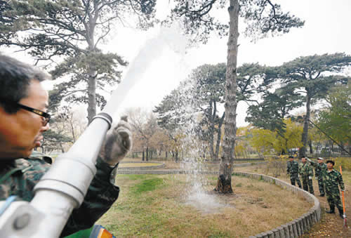 为确保今年绿化成果,保证树木安全越冬,沈阳目前已全面加强今冬明春绿化养护管理工作。除对树木进行树干刷白处理,还将在秋季树木落叶后至土壤结冻前、或早春土壤解冻后至树木萌芽前施肥;在11月中下旬,对树木进行一次冬灌,明年4月中下旬或5月初,对树木进行一次春灌;在今年12月至明年2月进行树木修剪;做好越冬防寒工作,对不同的树木分别进行包裹、涂白、培土、设置风障等。(于海)