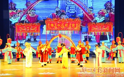 晚会的节目丰富多彩,紧随潮州大锣鼓之后的舞蹈《闺绣》,深刻而生动地演绎了潮州绣女的心灵手巧和婀娜多姿。潮州弦诗乐《浪淘沙》,让观众领略到潮州音乐的细腻和悠婉;潮州细乐《湘桥夜话》,把工夫茶茶艺表演恰到好处地融入其中,让悠扬潮乐中飘荡着袅袅茶香;男女声对唱《凤凰山茶歌》,把畲族青年男女的热情奔放的性情淋漓尽致地表达出来;潮州歌册《潮州八景新唱》,则让“老八景”唱出“新味道”。而潮曲表演《陈三五娘回潮州》,巧妙地让陈三五娘这对古代眷侣回到“娘家”,一路行来处处感受着今日潮州城市面貌的深刻变化。在刚刚启用的市文化艺术中心大剧院这个舞台上,在五光十色的霓虹灯下,郑舜英、唐龙通、许佳娜等潮剧名角和潮州市各演艺团体用精心排练的节目,把晚会的气氛一次次推向高潮,也赢得了现场观众一阵阵热烈的掌声。(吴杰文)