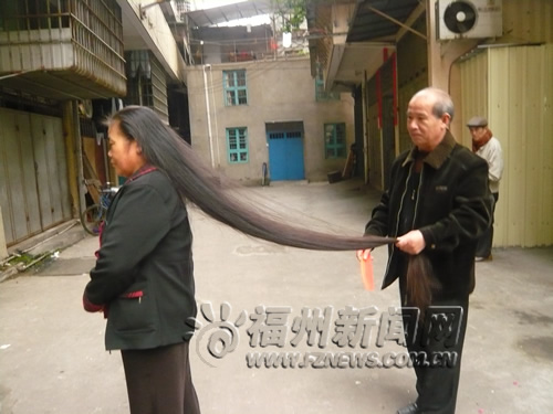 福清市玉屏街道56岁的郑秀珠女士就有这样一头长发。