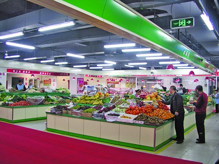 据介绍,升级改造的35处农贸市场增设休闲区域和休闲椅等人性化设施,配置LED显示屏,有条件的市场实行“农加超”经营形式,使市场经营环境舒适明亮、一尘不染。为了让市民消费更加放心,完成升级改造的农贸市场全部为经营生熟食品的业户配置了冷藏保鲜设施,设立了无公害蔬菜检验检测室,接通了猪肉零售追溯体系网络,购置了溯源式电子秤,并实行品牌经营,引进品牌厂商,品牌产品进市场。