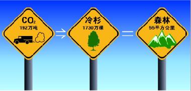 按1平方公里森林每年吸收二氧化碳3.5万吨计算,需要55平方公里的森林才能消耗。(蒋丽英)