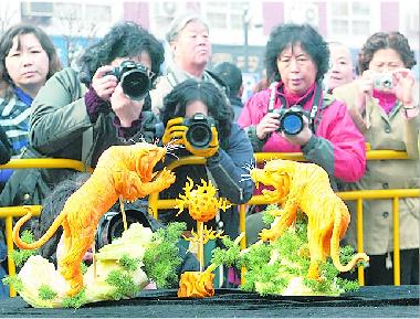 60多名雕刻行家运刀如笔,脆生生的萝卜变成龙凤栩栩如生,上百种地方小吃一路飘香,叫卖声此起彼伏,民间艺术粉墨登场,众多市民热烈追捧……昨天上午,2010青岛(市北)萝卜会·元宵山会热闹开幕,市委副书记王文华,市人大常委会副主任马泽,副市长、市北区委书记王建祥,市政协副主席郄晋生参加了开幕式。