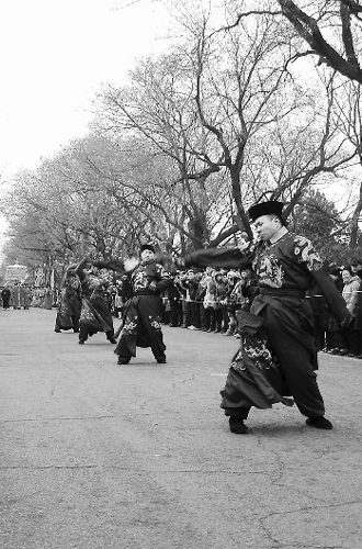 虎年初一,春寒料峭,但作为第六届北京天坛文化周的开幕日,游客依然盈门,许多人就是冲着这儿的皇帝祭天表演仪式来的。