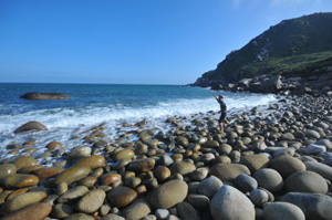 万宁市大花角全是大大小小的鹅卵石,非常漂亮,但因为没有开发,平日游客很少。记者从海口出发,沿东线高速公路行驶,到万宁高速出口下高速,往东南方向行驶约18公里,来到了大花角。