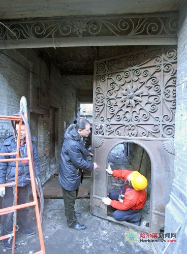 工作人员同时还在道外南头道街发现了一扇雕有精美图案的木门。它和铁门都被运回哈尔滨市博物馆安置,适时将在民俗展厅内向市民展出。(记者 丛明宇)