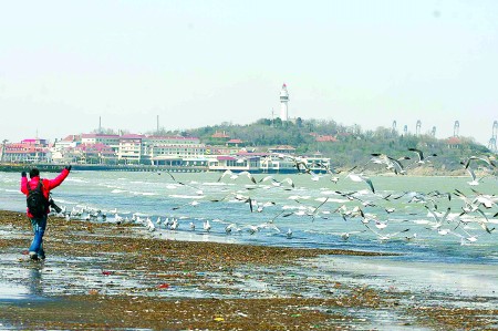 烟台市海洋环境监测预报中心的工作人员告诉记者,海鸥集中觅食与海洋环境的改善不无关系。(赵金阳 张琪)
