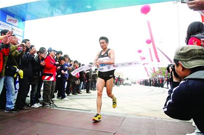 跑出一段距离后,2291号和2178号两名选手几乎并肩成了领跑者。在整个比赛的绝大多数时间里,分别穿着红色和黑色运动背心的他俩都保持了很大的领先优势。最终,代表上海自由马俱乐部参赛的2291号选手薛峰以1小时08分11秒的成绩获得半程马拉松男子组冠军,来自上海的2178号选手张希望以11秒之差屈居第二,来自盐城的1001号选手高署亮获得第三名,成绩是1小时08分54秒。