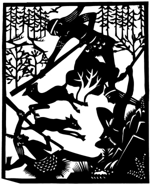 狍子,灰棕色,颈长尾短,耳大直立,鼻端无毛,体重为25—40公斤,体长约100—140厘米。雄性长有三叉的角,雌性狍子不长角。狍子属鹿科,性情绵顺,对突如其来的情景大多惊呆,很容易被猎人捕获,所以俗称它为“傻狍子”。家里来了客人,猎人拿个木棒子出去,不一会儿就能打死一只狍子回来,剥皮烀肉做下酒菜。说明关东这块地方狍子成群,随手就能打到一只吃肉。捕狍方法很多,常用有“一卡狍道,二迎围,三下套子,四是双腿撵狍子”。尤其是下大雪时撵狍子,发现狍群时,突然一声大喊,吓得狍子懵头转向,到处乱跑,陷入雪地,就走不动了,人们手拿棒子照狍子脑门打一下,或打狍腿,都能轻易捕到它。