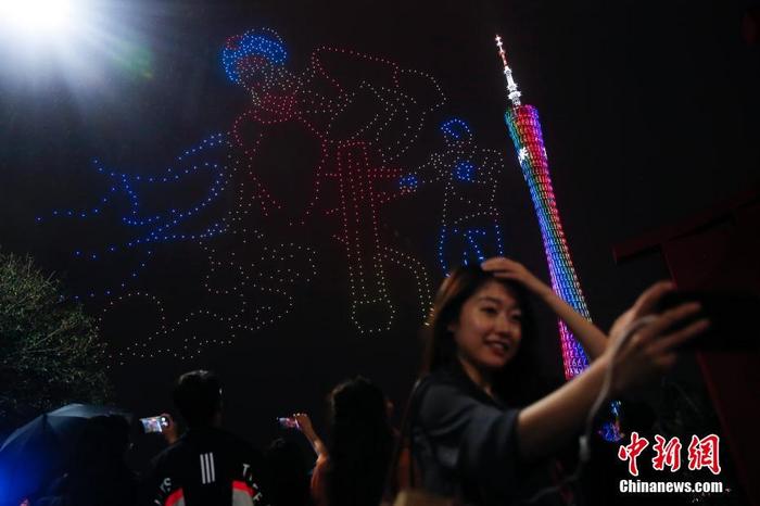 无人机灯光秀点亮广州上空 描绘“大湾区 大未来”