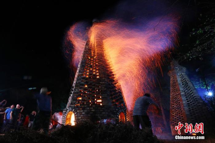江西乡村赏月烧塔迎中秋 场面壮观