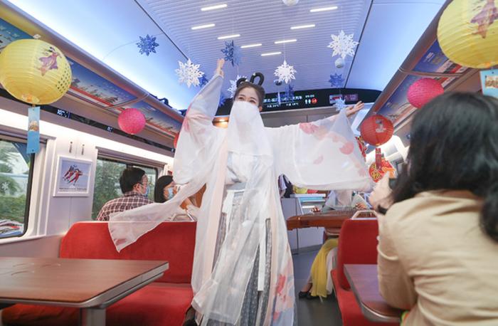 京张高铁乘务员扮作“嫦娥”向旅客送出中秋祝福