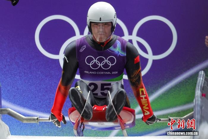 (米兰冬奥会)中国选手鲍振宇亮相男子单人雪橇比赛