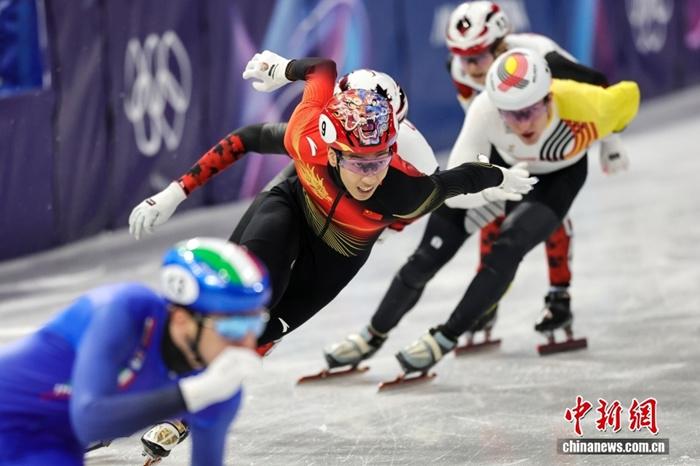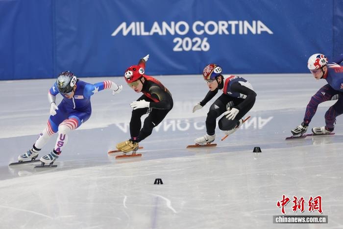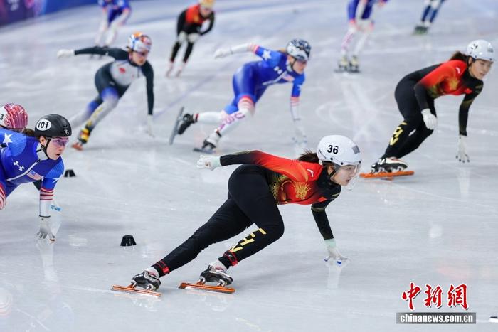 (米兰冬奥会)中国队位列短道速滑女子3000米接力B组决赛第一