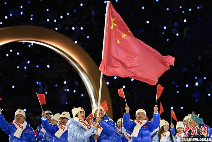 米兰-科尔蒂纳冬奥会举行闭幕式 苏翊鸣挥舞五星红旗入场