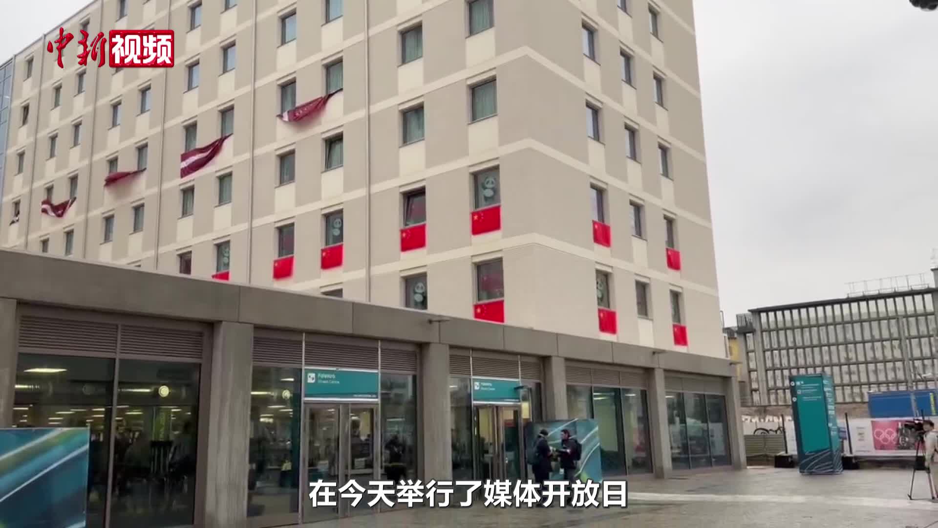 记者直击米兰冬奥村 中国代表团驻地挂满五星红旗