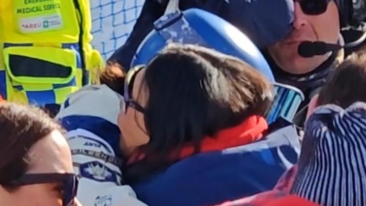 谷爱凌第二跳获得94分后观众欢呼,谷爱凌与母亲相拥