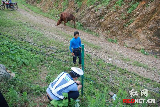 民警立即上前对老汉展开了耐心细致的教育,通过教育,老汉也认识到自己上高速公路放牛违法行为的危害性,表示今后再也不上高速公路放牛了。说完,牵着牛和羊朝“出口”走去。民警顺眼望去,这个所谓的“出口”竟是路边防护网破损处。原来沿线村民为了出行方便,偷偷把路边的防护网剪破,时常趁着高速交警巡逻间隙上高速行走。