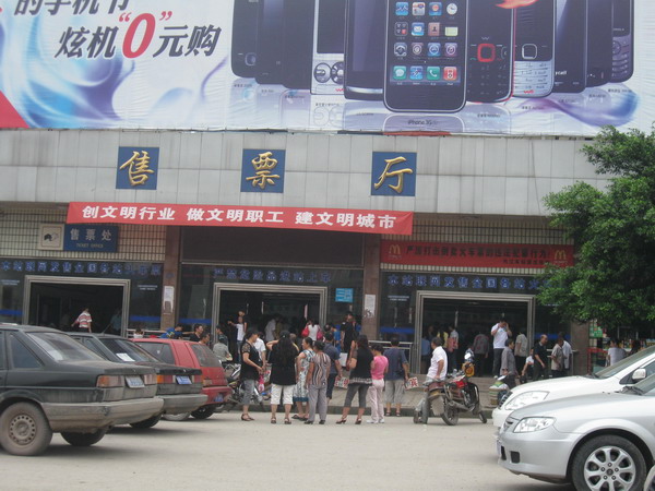 6月29日,虽然不是烈日当空,但闷热和躁动弥漫了火车站的售票大厅。下午2点40分,售票大厅内排起了好几条长龙,数百人焦急地等待着自己走到“龙头”的位置,以便于顺利购得车票,踏上远方的火车。