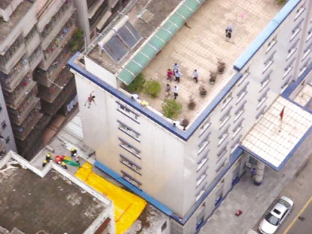 事发时,黄先生位于派出所旁边一栋高楼的31层,他看到男青年跳楼全过程。黄先生说,下午3时许,一名20岁上下的男青年爬到派出所楼顶,“有人要跳楼了!”听到呼喊声后,黄先生立即向下观望,只见在清水河派出所7楼楼顶西北角的边缘处蹲坐着一名男青年,大概5米之外,七名民警正在耐心开导。不久,消防官兵赶到,立即在派出所西侧一栋二层高的附楼楼顶铺设防护气垫。3时27分,男青年纵身跳下。