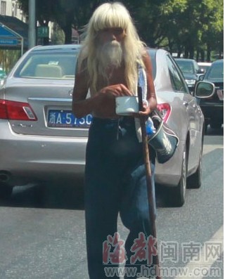 在川流不息的马路上,一位乞讨老爷爷上身赤裸、手持长棍、白发披肩、齐眉刘海、长髯飘飘,颇有点仙风道骨的味道。8月3日,这个名为“‘神仙爷爷’惊现街头”的图文帖一出现在猫扑论坛,立刻登上首页,引起几十万网友围观。几天后,相继有不少网友和媒体走上杭州街头寻找“神仙爷爷”,并查实,“神仙爷爷”的真名叫张述华。这位68岁的安徽老人为了给家人减轻负担,在全国各地流浪乞讨,最后张述华得到了杭州市民政部门的救助,被送往安徽老家。