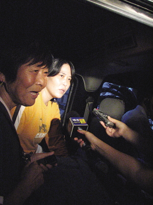 电梯上的数字从“5”开始下降,那里,就是朱金红所住的病房。所有人,都在等待那个让人牵挂的身影出现。傍晚6时15分左右,在医院副院长王丽娟的陪同下,朱金红走下电梯。依然是橘红色的上衣、白色运动裤、马尾辫,脸色苍白如纸。不知有意还是无意,朱金红躲开母亲径直走出病房大楼。在即将上车那一刻,唐美兰才将女儿扶进车,自己则坐在了女儿身边。