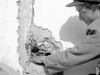 村民们一直担心,质量有问题的房子住了很难保证安全,“如果再发生地震,这样的房子能挺住吗?”村民现场为记者砸开墙体,发现砖与砖之间很多处根本没有浇注砂石和水泥。