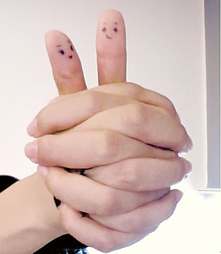 记者在千千论坛看到,一些网友还把“浮云兔”手势代表兔子耳朵的大拇指画上笑脸,很可爱。胡杨林社区网友“涵妮”说,与传统的作揖方式不同的是,这种兔手势很有创意,而且简单、形象,今年最潮的拜年手势莫过于此了。她说:“想想两个朋友春节见面,互相用兔手势问新年好,那种感觉真是太棒了!”