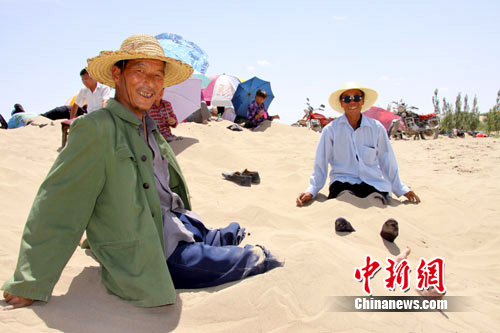 中新网兰州7月11日电 (张海燕 赵昕)甘肃玉门市柳河乡第七届黑沙窝沙浴民俗文化节于近日开幕,文化节吸引了大量来自周边县市,甚至远至新疆、青海等地的近5000多人。