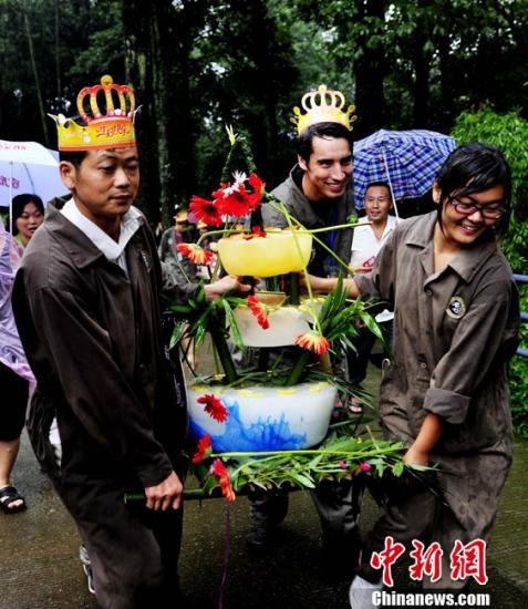 中新社雅安8月21日电 (杨杰 安源)6只在国外出生的大熊猫,21日在中国保护大熊猫研究中心碧峰峡基地度过了归国后的第一个集体生日。来自国内外的上千名游客和爱心人士冒着瓢泼大雨,为“国宝”送上生日祝福。