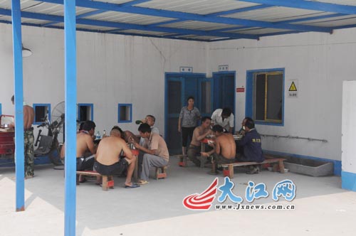 风扇嗡嗡作响,虽然没有空调,由于板房两面通风,房间里非常凉爽。“前些日子三十七八度,晚上经常热得睡不着,这些天温度低了点,住的还比较舒服。就是菜里油水太少了,食堂老板也要赚钱嘛。”熊本维显得非常乐观。