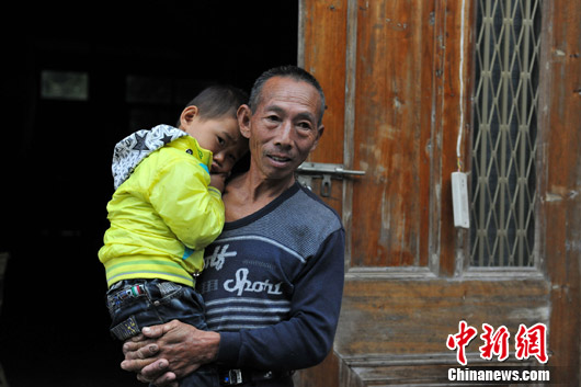 “这孩子平常都是我在带,都嚷着要妈妈,”64岁的黄大爷正带着5岁的黄承杰在家门口休息。黄大爷告诉记者,他家现在在村里居住的还有85岁的老母亲,1家3口四代人。见记者拍照,黄承杰怯生生地躲到了黄大爷身后,“承杰的父母都在外打工,他在家没人带,很内向,他父母不知何时才能回来。”黄大爷说。