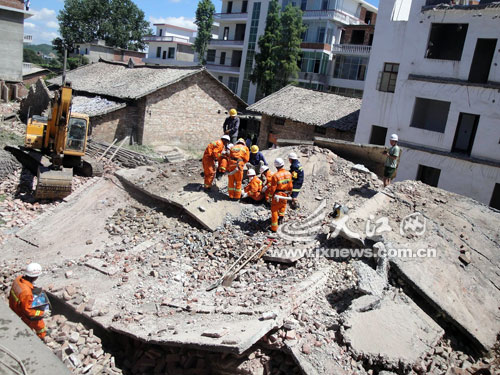 江西一在拆房屋坍塌4民工被埋 近百人紧急施救(图)