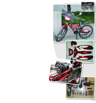 昨天,人人网上流传一个超强大的相册,相册中是一个“神人”改装的自行车。而这个“神人”,便是大家并不陌生的手工帝魏泽楷,他以手工制作缤纷绚烂的水果灯、西瓜瓤雕刻擎天柱、在寝室用蜡烛加热做中秋月饼、废铜烂铁做成超强大的机器人等各种作品闻达网络。这次,这个相册中盛传的是他改装的超雷人自行车。