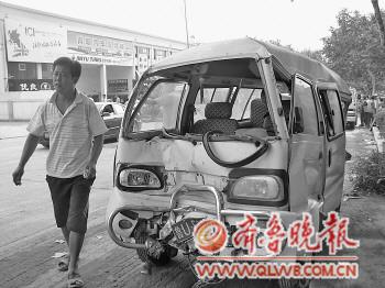 接到了读者报料,记者于9点半赶到事发现场。记者看到,闯祸的309路公交车已经被拖离现场,停在309路公交车站院内,车辆左后侧的车玻璃和车灯破碎,后保险杠左侧被撞烂了,但没有完全脱落,车底下流了很多油,车厢内散落着很多细小的玻璃碎片。