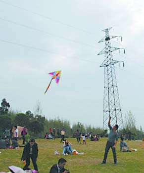 春天放风筝,你会不会先抬头观察附近是否有电线呢?近日,照母山森林公园内就有不少市民在22万千伏安的高压电线下放风筝,让有安全常识的游客为之捏了把汗。电力专家提醒:在电线两侧300米内属于禁放范围,放风筝请一定选择开阔地点。因为风筝一旦挂上电线,不仅有可能伤害自身,还可能引发大面积停电。