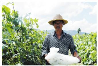 一位果农抱着葡萄地里残留的冰雹 李玮