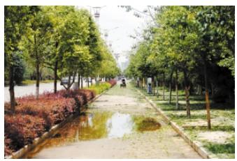 人行道上,被冰雹打下的树叶大堆大堆地散布一地,每片叶子都是支离破碎的。行人走过时,发出一声声闷响。在非机动车道上,还有很多拳头粗细的树枝横着,枝上的树叶仅剩下几片。而很多树枝没有断的树上,树叶也已掉去大半,仅剩下光秃秃的树干。