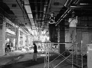 昨天,在地铁平西府站内,工人们正抓紧进行附属工程施工。晨报记者 王巍/摄