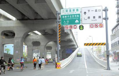 周伟潮提醒,在刃具立交之前的下行匝道,市民要选择右侧车道进入刃具立交,才能继续沿二环底层行驶。
