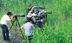 随后,田润刚将这个消息告诉了一些野鸟摄影爱好者。这一发现很快引发圈内“地震”,来自上海、杭州、宁波等地的发烧友一一赶到滨海海涂,携带“长枪短炮”守候于芦苇丛中,许多发烧友收获了精彩的图片。