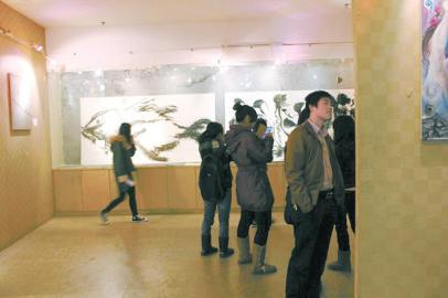 大家正在欣赏蒲勇坤的画作。