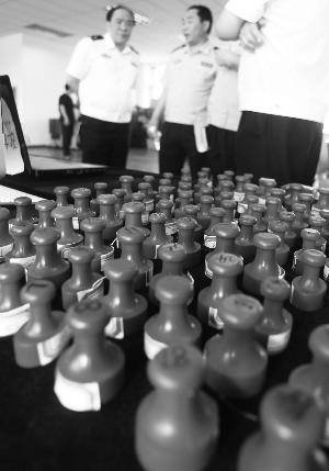 昨天,北京警方通报了一起3年来本市最大一起制贩假发票案件。市公安局西站分局捣毁制假售假窝点9处,抓获16名犯罪嫌疑人,查获假公章、假发票专用章171枚(见图),收缴假发票42.6万余份。