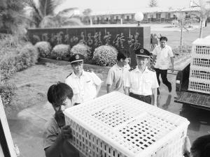 文昌鸡是我省禽类出岛的主打产品,正常日出岛量11万多只,4月底锐减到2万只,目前恢复到近8万只。(图为文昌鸡活鸡运往香港)